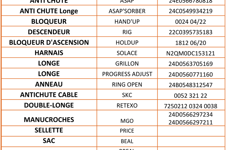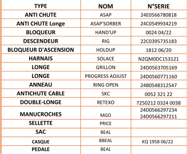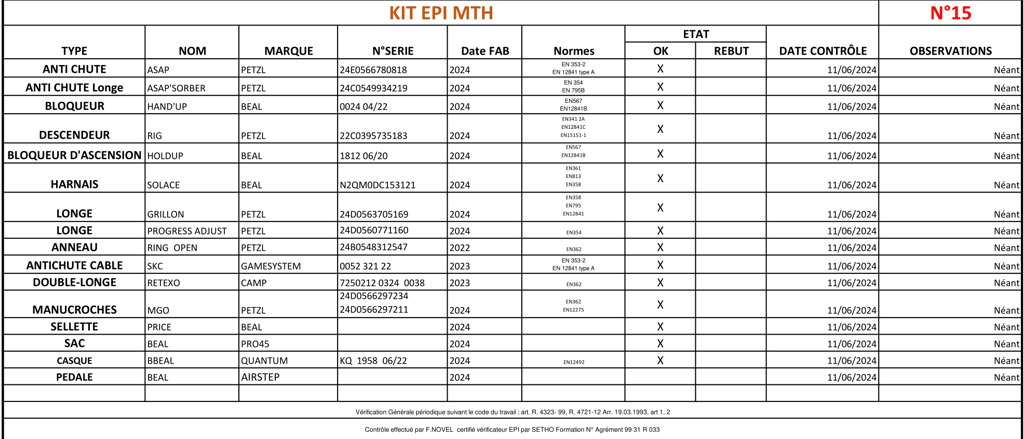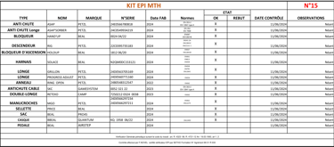 Liste des EPI contre les chutes de hauteurs KIT EPI MTH15