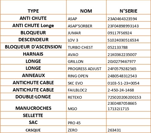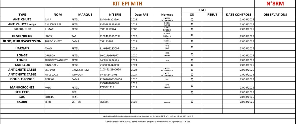 Liste des EPI contre les chutes de hauteurs KIT EPI MTH8